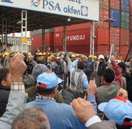 Özelleştirildikten sonra PSA-Akfen ortak girişimi bünyesindeki Mersin International Port (MIP) tarafından işletilen Mersin Limanı'nda hizmet veren firmada çalışırken ekonomik durgunluk ile iş hacimlerinde meydana gelen düşüş gerekçe gösterilerek işten çıkarılan 103 işçi, aileleri ve bazı sendikaların temsilcileriyle Petrol-İş Sendikası Mersin Şubesi'nin önünden yürüyüş başlattı.