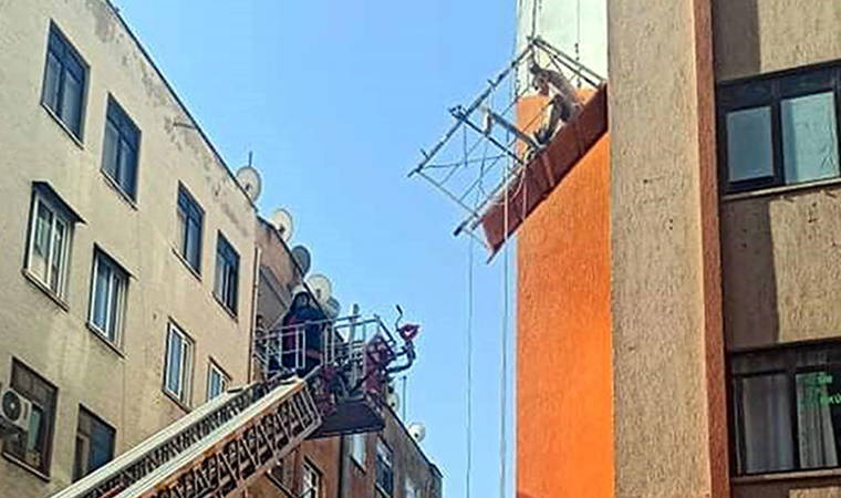 İsmi açıklanmayan işçinin iskelede asılı kaldığı anlar, sosyal medya kullanıcısı Besim Askay tarafından fotoğraflanıp 'İskele koptu, adam yukarıda asılı kaldı' notu ile paylaşıldı.