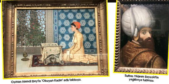 Bir de tabii 1910’daki ölümünden sonra Batılıların “Osmanlıların en Parizyeni, Paris”lilerin en Osmanlısı’ diye bahsettikleri, ünlü oryantalist ressam Jean-Leon Gerome’un öğrencisi Osman Hamdi Bey’in “Okuyan Kadın” tablosu var. Bir seccadeye diz çökmüş Kuran okuyan bir kadın. Resmin fonu Doğulu motifler, çinilerle bezeli. Unutmayalım, Osman Hamdi, Sanayi-i Nefise Mekteb-i Ali’sini ve Arkeoloji Müzesi’ni kuran ressamımız.