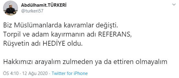 İsmailağa cemaatinin 'Fıkıh Kurulu Âzâsı' olan Abdülhamid Türkeri, konuyla ilgili yaptığı paylaşımda şu ifadeleri kullandı: