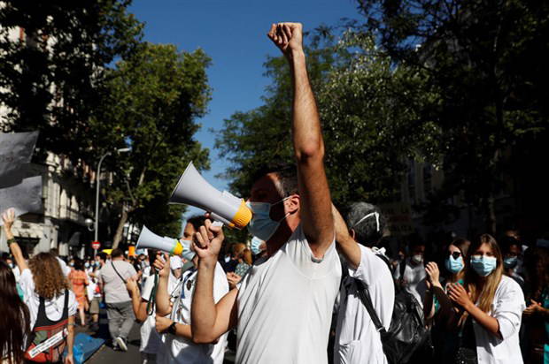 Madrid Doktorlar ve Tıp Mezunları Derneği’nin Genç Doktorlar Birim Başkanı Sheila Justo yaptığı açıklamada, 22 Mayıs'tan bu yana anlaşma konusunda bir yanıt almaya çalıştıklarını söyledi. Yetkili makamlardan yanıt gelmemesi halinde süresiz grev gibi daha sert kararlar alma aşamasında olduklarını Justo, “Halkımız tarafından alkışlarla takdir ediliyoruz. Ancak, halk bizi alkışlarken, idareciler de bizi biraz görmeli. Halkın bu minnettarlığının karşısında taleplerimiz hiç de kabul edilemez değil. Birçok arkadaşımız yeterli koruma önlemi alınmadığı için öldü” dedi.