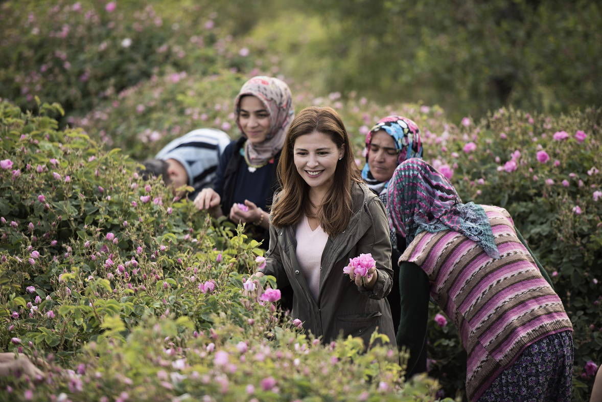 Gül tedariğimizin yüzde 20’sini kendi bahçelerimizden yapıyoruz. Sözleşmeli tarım da yapıyoruz. Tabii uzun yıllardan beri beraber çalıştığımız bahçe sahiplerimiz var. Hasatta çalışan emekçilerimizin çoğu kadın, yaklaşık 200’ e yakın kadınla çalışıyoruz . Ofis ve operasyon tarafımızda çalışanlarımızın yüzde 70’ inden fazlasını kadın çalışanlarımızdan oluşmaktadır.