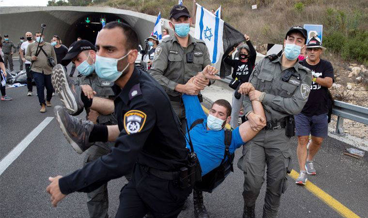 Uzun zamandır protestoların devam ettiği İsrail'de göstericiler, Almanya’dan denizaltı alımında Binyamin Netanyahu'nun yolsuzluk yaptığı gerekçesiyle Tel Aviv’deki Hemed Kavşağı’nda toplandı. Dev bir denizaltının maketini taşıyan protestocular, Netanyahu'ya soruşturma açılması için çağrıda bulundu. Gösterciler ayrıca, Netanyahu’nun istifasını talep etti. Polis, müdahalede bulunarak en az 8 kişiyi gözaltına aldı.