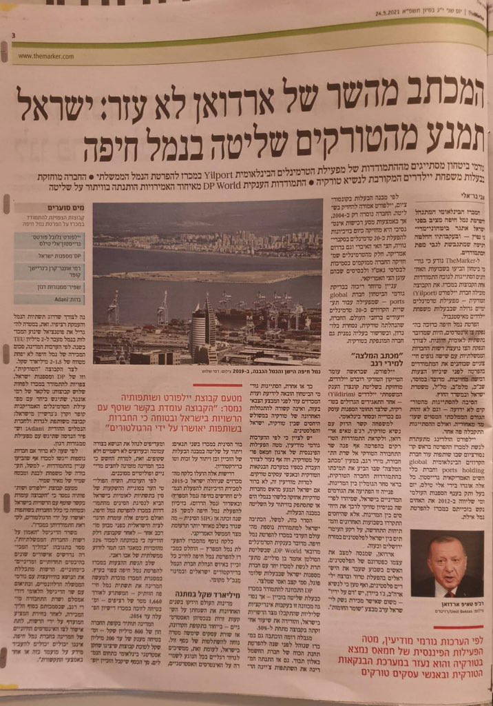 İsrail'in çok okunan gazetelerinden Israel Hayom, 7 Nisan tarihli haberinde, Ulaştırma ve Altyapı Bakanı Adil Karaismailoğlu'nun İsrail Ulaştırma Bakanı Miri Regev'e, Hayfa Limanı'nın özelleştirme ihalesi ile ilgili talepler içeren bir mektup gönderdiğini öne sürmüştü.
