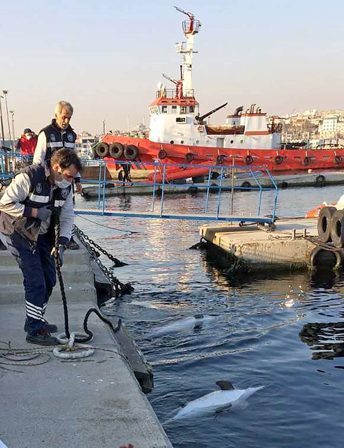 İstanbul Büyükşehir Belediyesi (İBB) Deniz Zabıta Amirliğince alınan yunusun, İÜ Su Bilimleri Fakültesi ve TÜDAV uzmanları tarafından incelenmek üzere Yenikapı birimine getirildiğini belirten Tonay, "Bu sırada İBB İSTAÇ deniz ekibi Vaniköy ve Kuleli'de iki ölü tırtak daha buldu. Onları da Yenikapı Deniz Zabıta Amirliği'ne getirdi" dedi.
