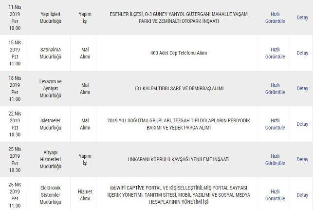 OdaTV'nin haberine göre en dikkat çekenlerden birisi de 15 Nisan'da gerçekleşecek olan ihale. İstanbul Büyükşehir Belediyesi Satınalma Müdürlüğü tarafından gerçekleştirilecek olan ihalede 400 adet cep telefonu alımı yapılacak. Bu kadar ihalenin belediye başkanlığının değişmesine günler kala yapılacak olması da ayrı bir tartışma konusu.