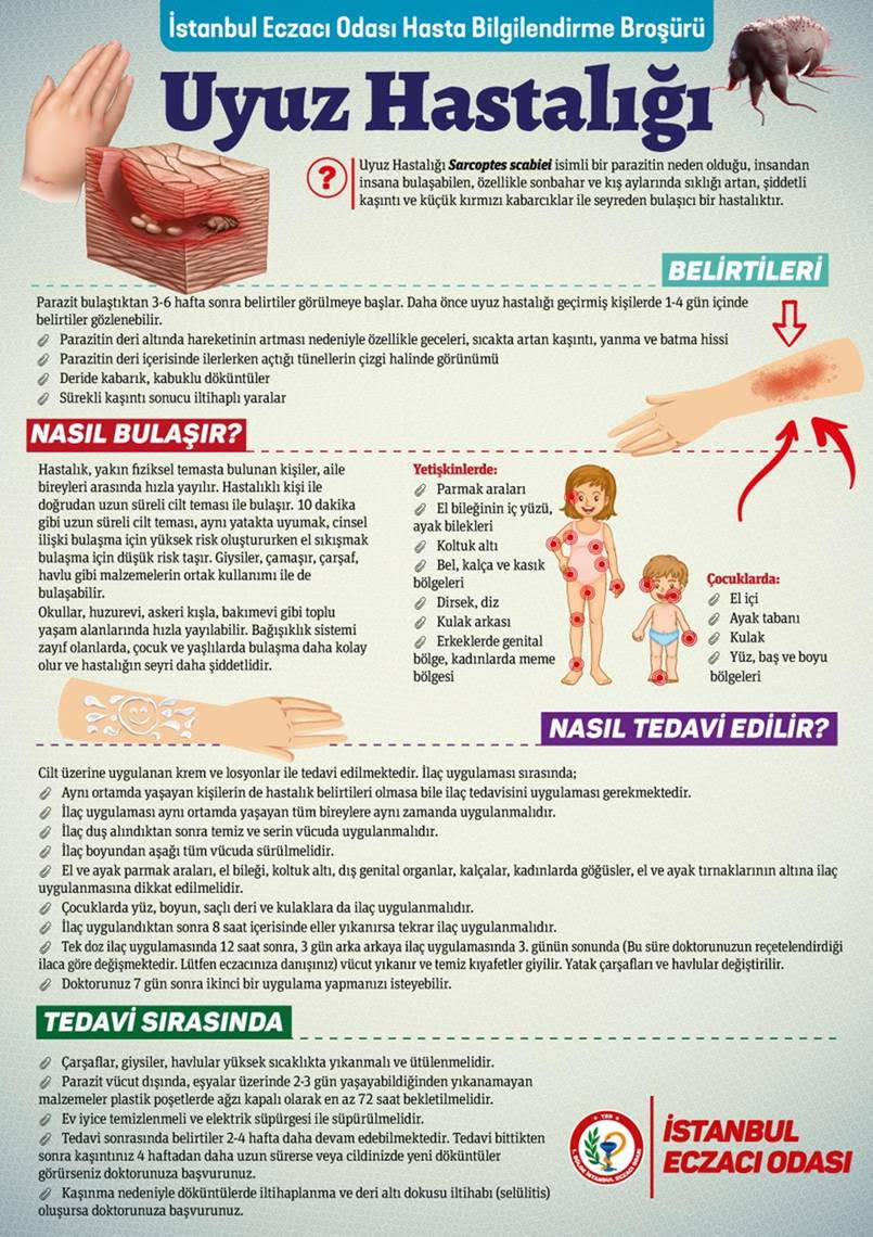 Uyuz Hastalığı Sarcoptes scabiei isimli bir parazitin neden olduğu, insandan insana bulaşabilen, özellikle sonbahar ve kış aylarında sıklığı artan, şiddetli kaşıntı ve küçük kırmızı kabarcıklar ile seyreden bulaşıcı bir hastalıktır.
