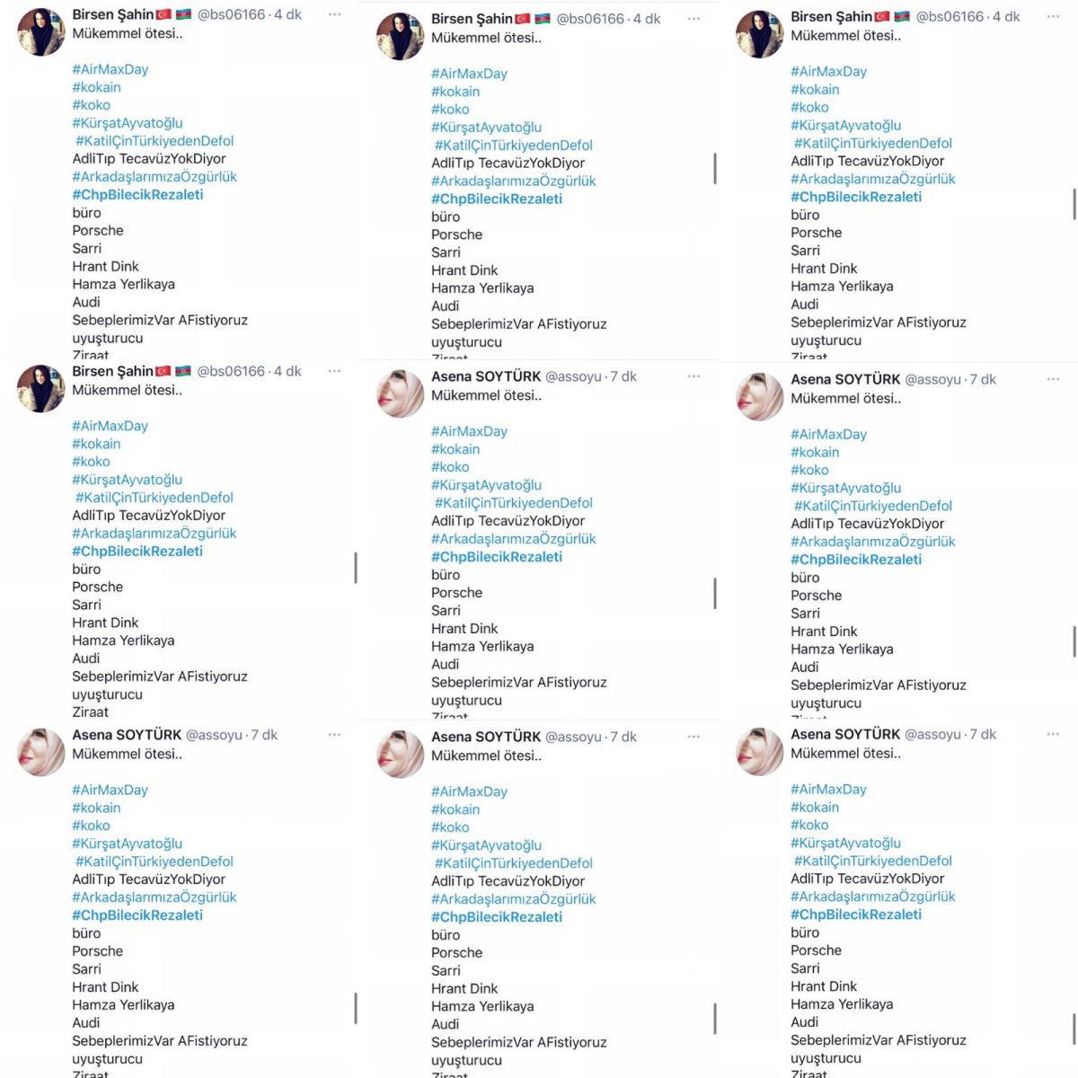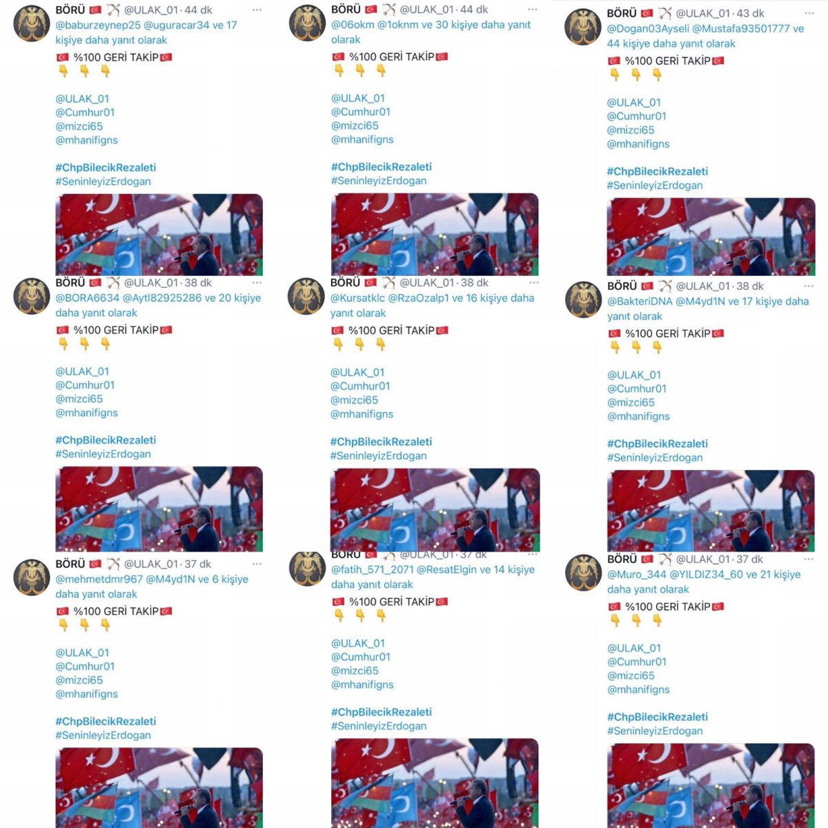 - Bot yazılımlar aynı tweeti binden fazla çoklu etiketle yayınladı.