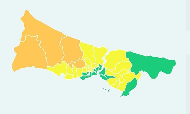 Meteoroloji Genel Müdürlüğü'nün Twitter adresinden akşam saatlerinde renkli İstanbul haritasıyla yeni bir paylaşım yapıldı. Renkler şu anlama geliyor: