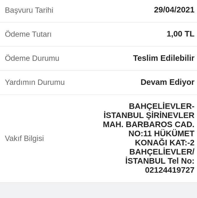 Independent Türkçe'nin haberine göre; Vakfın sosyal yardımlaşma programına kayıtlı bir ilçe sakinine geçen gün "2021 gıda yardımı" adı altında 1 lira verildi.