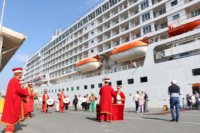 Karaköy Limanı Mülki İdare Amiri Vali Yardımcısı Mehmet Kalyoncu, "İstanbul gibi bir dünya şehrimizde ilk defa 4 yıl sonra bir geminin gelmesi, bizim için, ülkemiz için mutluluk kaynağıdır" dedi. Çoğunluğu İtalya ve Yunanistan vatandaşı turistleri taşıyan 'Regent Seven Seas Voyager' adlı gemi, saat 08.30'da, Sarayburnu Limanı'na yanaştı. İstanbul'a 4 yıl aradan sonra gelen ilk kruvaziyer gemisi olan lüks yolcu gemisi için tören düzenlendi. Kendileri için kırmızı halı serilen 750 yolcu mehter takımıyla karşılandı.
