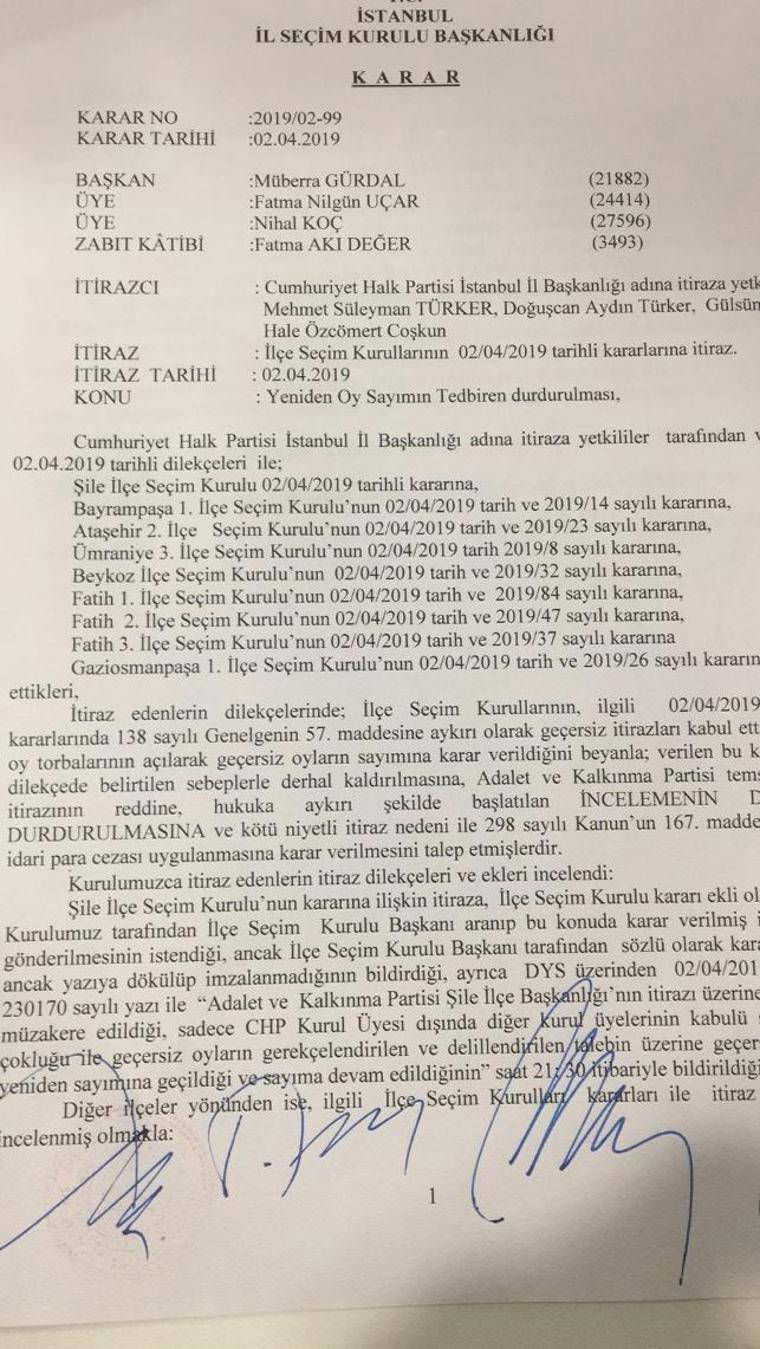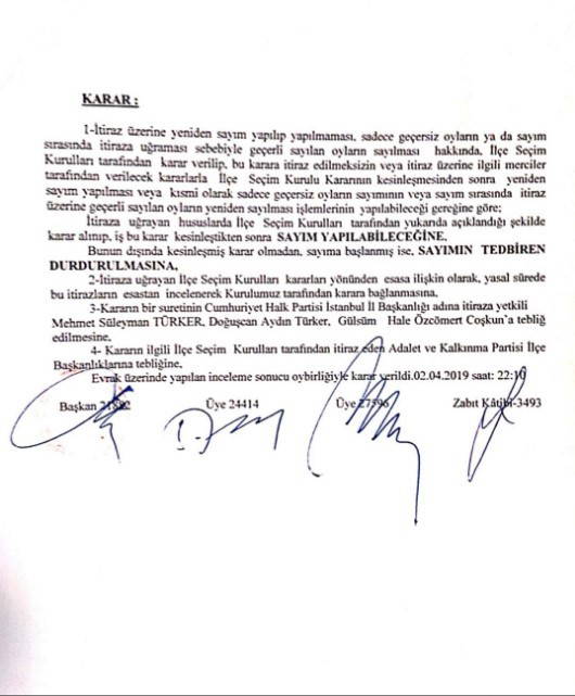 İstanbul İl Seçim Kurulu birçok ilçede başlanan oy sayım işleminin tedbiren durdurulmasına karar verdi.