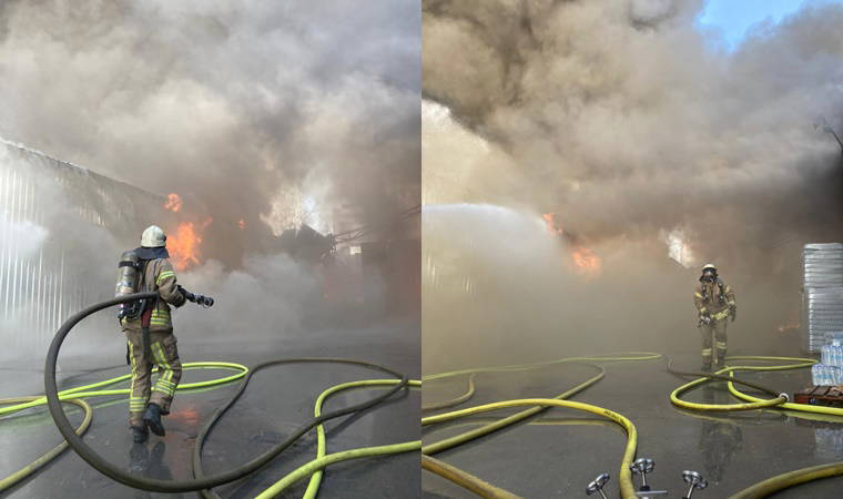 Edinilen bilgiye göre, Halkalı Merkez Mahallesi Dereboyu Caddesi üzerindeki geri dönüşüm tesisinde kaynak yapılırken ambalajlara kıvılcım sıçraması üzerine yangın çıktı.