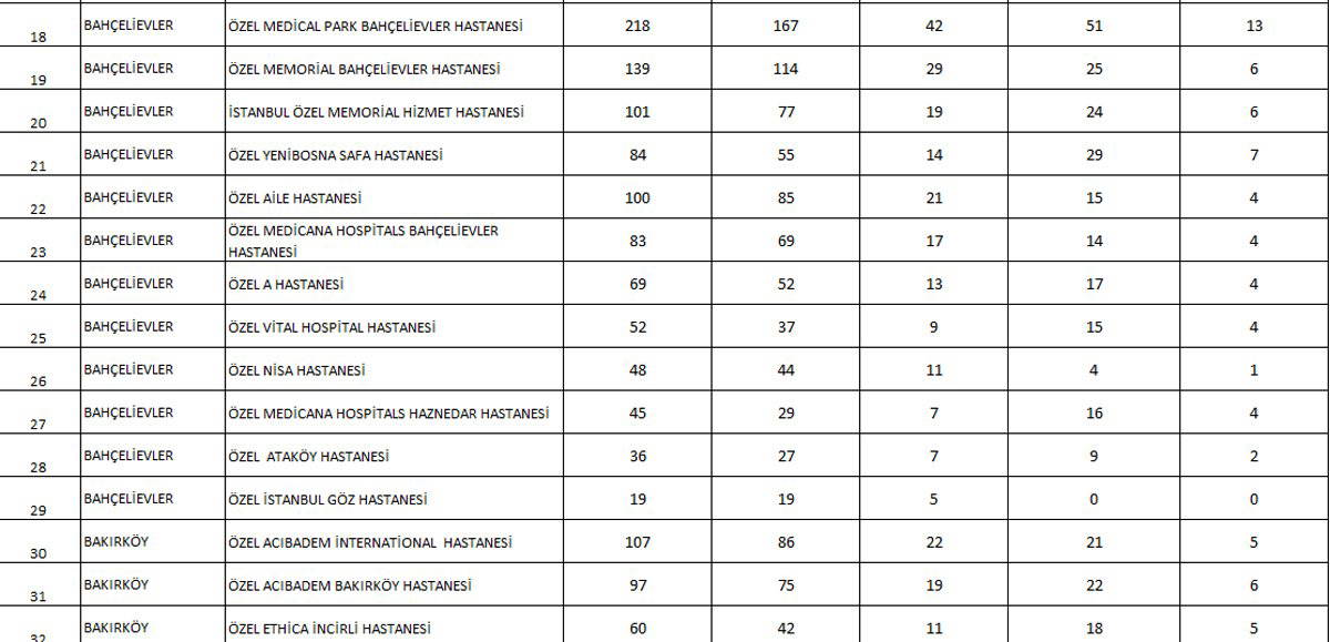 İŞTE HASTANELERİN LİSTESİ