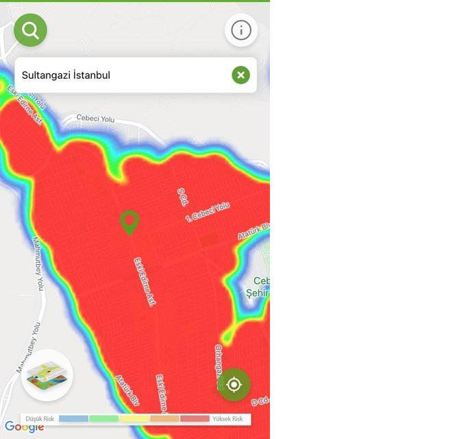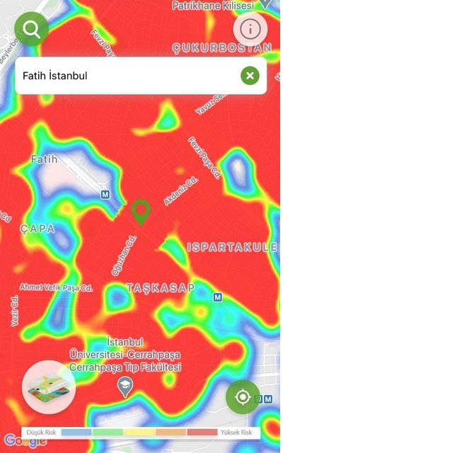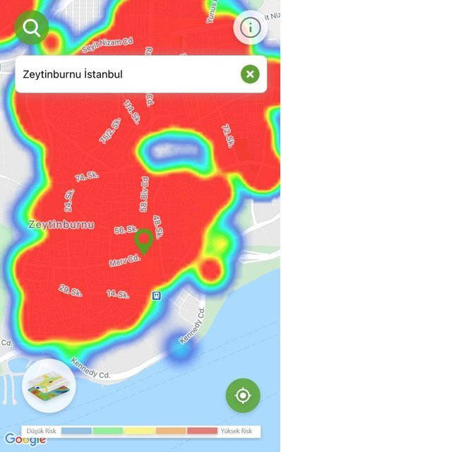 Hayat Eve Sığar uygulamasında İstanbul’da ilçelerin kıpkırmızı olduğu görüldü.