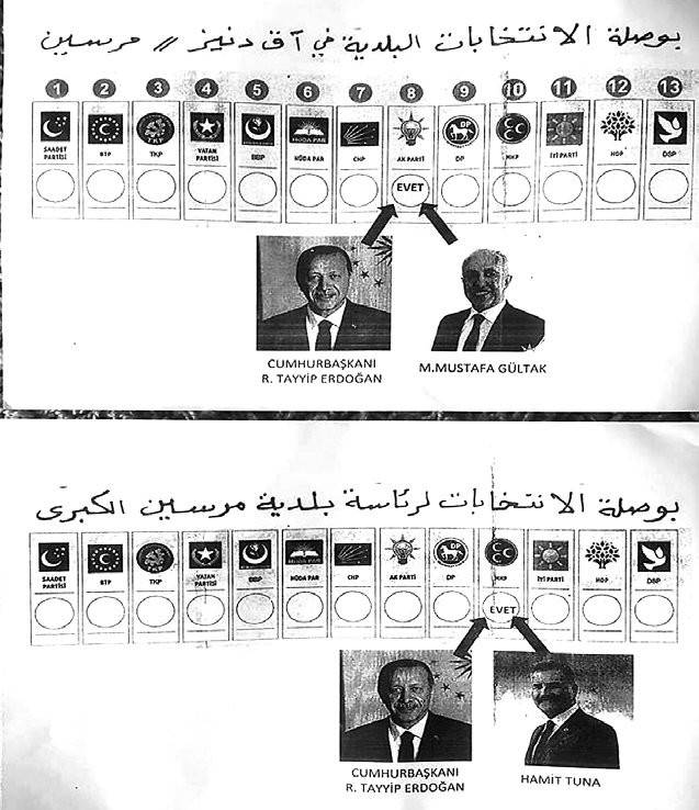 Mersin'de Suriyeli seçmenlere bu örnek pusulalar dağıtıldı.