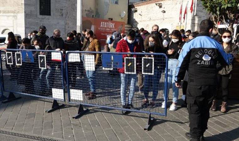 Koronavirüs tedbirleri kapsamında dün İstiklal Caddesi'nde metrekareye 3 kişi toplamda en fazla 7 bin kişinin bulunabilmesi için uygulama başlatıldı.