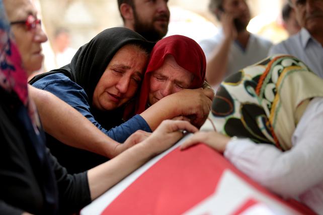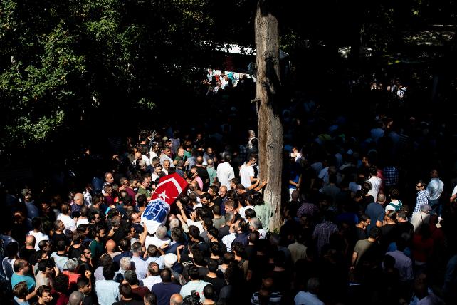 Yaşanan saldırı sırasında yaralanan Halit Ayar'ın arkadaşı Sinan Nalçacı da tekerlekli sandalye ile cenaze namazına katıldı. Ölen arkadaşının tabutunun yanına gelen Nalçacı arkadaşının tabutunu elleyerek gözyaşı döktü.