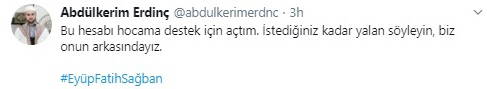 Abdülkerim Erdinç isimli mürit 2020 tarihinde açtığı hesaptan "Bu hesabı hocama destek için açtım. İstediğiniz kadar yalan söyleyin, biz onun arkasındayız" diye yazdı.