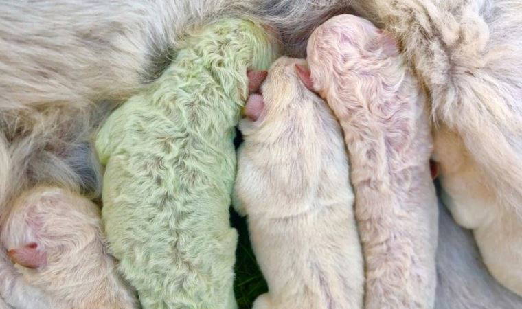Çok nadir de olsa köpek yavruları bazen açık yeşil doğabiliyor.