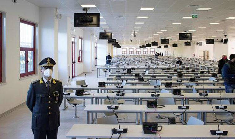 Dava için Lamezia Terme kentinde bin kişilik yeni mahkeme salonu oluşturulurken, Kovid-19 salgını sebebiyle koltuklar arasına 2 metrelik mesafe konuldu.