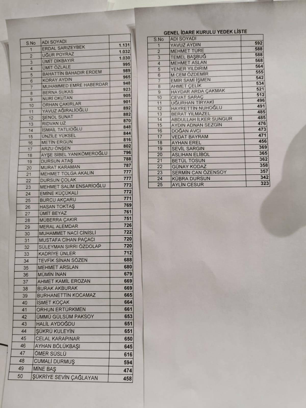 GİK listesinde asil üye olarak 13 kadına yer verilirken, yedek listede de 6 kadın yer aldı. Bin 131 delegenin oyu ile Erdal Sarızeybek listede birinci çıkarken, onu bin 32 oy ile Uğur Poyraz, bin 30 oy ile Ümit Dikbayır takip etti.