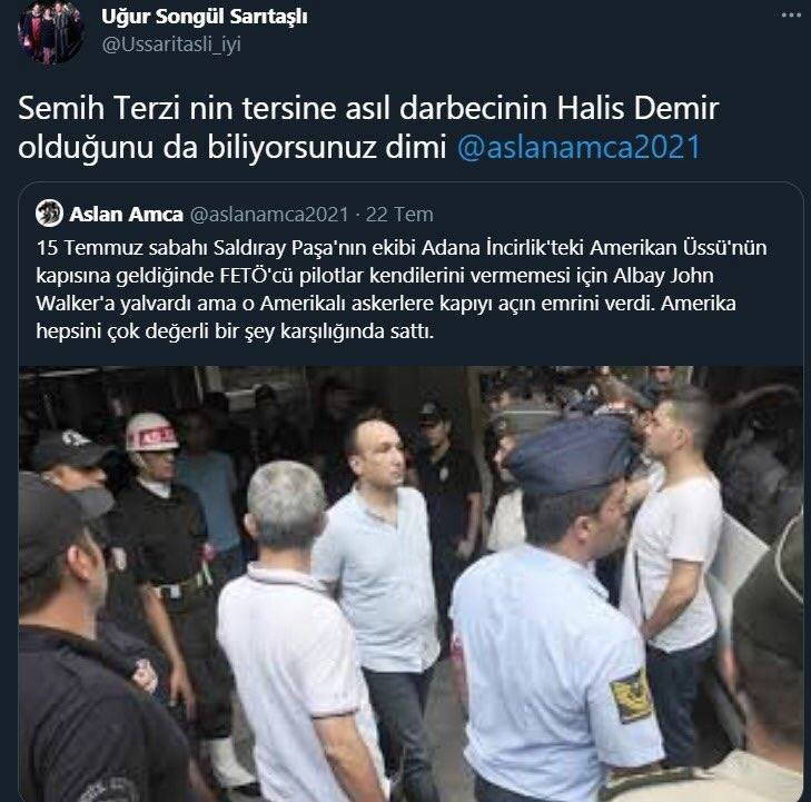 "Semih Terzi’nin tersine asıl darbecinin Ömer Halisdemir olduğunu da biliyorsunuz değil mi?" diyen Sarıtaşlı, tepki üzerine söz konusu paylaşımı silerek sosyal medya hesabını kapattı.