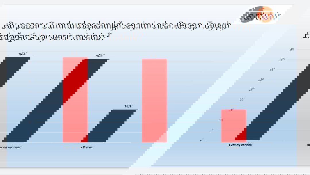 Aytun Çıray'ın paylaştığı artıbir anketinin, "Bu Pazar Cumhurbaşkanlığı seçimi olsa Recep Tayyip Erdoğan'a oy verir misiniz" sorusuna ise katılımcıların verdiği yanıtların yanıtları şöyle: