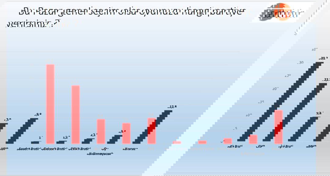 Çıray'ın paylaştığı ankette, "Bu Pazar genel seçim olsa oyunuzu hangi partiye verirsiniz" sorusuna katılımcıların yanıtları şöyle: