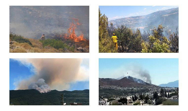 Arazinin sarp olması nedeniyle ekipler bazı bölgelere müdahalede zorlandı. Alevler Turgutreis, Gümüşlük, Akyarlar ve İslamhaneleri mahallelerinden de görüldü. Ekiplerin yangını söndürme çalışması sürüyor.