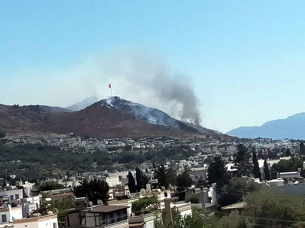 Muğla’nın Bodrum ilçesindeki makilik ve otluk alanda yangın çıktı. Rüzgarın da etkisiyle büyüyen alevler, Akyarlar ve Gümüşlük gibi turistik mahallelerde de görülüyor.