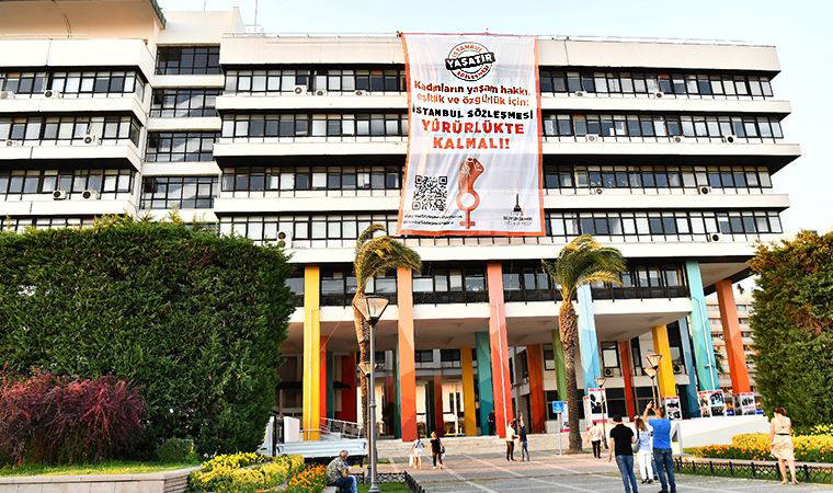 İzmir Büyükşehir Belediyesi, şiddete karşı kadını koruyan İstanbul Sözleşmesi’nin kaldırılması tartışmaları üzerine “Kadınların yaşam hakkı, eşitlik ve özgürlük için İstanbul Sözleşmesi yürürlükte kalmalı” sloganıyla hazırladığı 10 x 15 metre boyutlarındaki karekodlu (QR kodlu) dev pankartı Büyükşehir ana hizmet binasının Saat Kulesi tarafına bakan cephesine astı. Kentteki billboardlara da yerleştirilecek pankarttaki karekod, İstanbul Sözleşmesi’yle ilgili yanıltıcı bilgilere karşı doğruları içeren bir afişe yönlendiriyor.