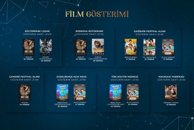 İzmir halkına ücretsiz bir sanat keyfi sunacak olan Uluslararası İzmir Film Festivali, vizyon filmi adaylarının gösterim takvimi ise şöyle: