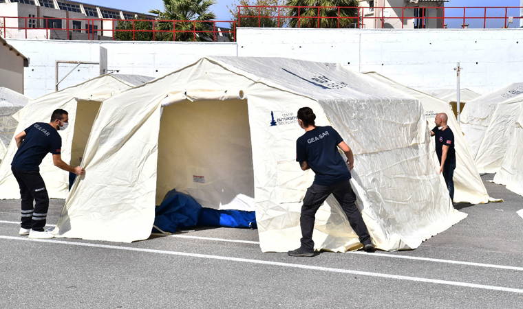 İzmir Büyükşehir Belediyesi İtfaiyesi, deprem kuşağında yer alan kentte olası afetlere hazırlık çalışmalarını kesintisiz sürdürüyor. Bu kapsamda İtfaiye Dairesi Başkanlığı tarafından 800, Sosyal Hizmetler Dairesi Başkanlığı tarafından da 200 adet afet çadırı alındı. İtfaiye bünyesinde görev yapan uzman personel, deprem anında barınma ihtiyacına hızlı bir şekilde yanıt verebilmek için alınan çadırları kurma ve sökme eğitimi vermeye başladı. Buca'nın Şirinkapı Mahallesi'ndeki Yangın ve Doğal Afet Eğitim Merkezi'nde verilen eğitimler için beşer kişilik gruplar oluşturuldu. Her grup itfaiye personelinden çadır kurma ve sökme eğitimi aldı.