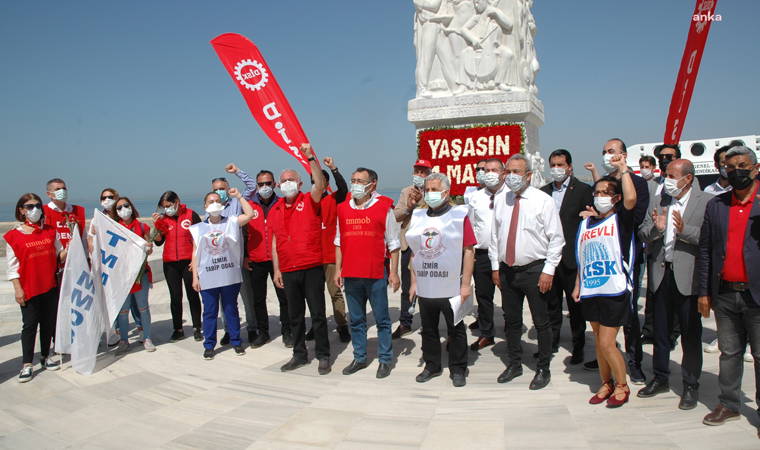 Açıklamanın ardından İzmir Barosu Başkanı Özkan Yücel de "Tedbirleri alamıyorlar, koruyamıyorlar. Çarklar dönsün diye işçinin emekçinin yaşam hakkı risk altına alınıyor. Bugün temsili bir kutlama yapıyoruz. Yine bu alanı hınca hınç doldurup bayramlarımızı kutlamaya devam edeceğiz. Ne yaparlarsa yapsınlar mücadelenin önüne geçemeyecekler" diye konuştu.