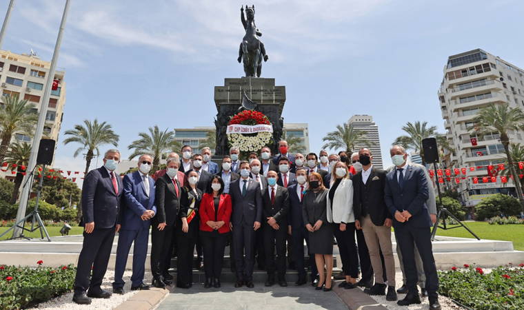 Atatürk anıtına çelenk konulan törende coşkuyla kutlanamayan milli bayramlara vurgu yapıldı. CHP İzmir İl Başkanı Deniz Yücel, "Ülkemizi adaletsizlikten, yoksulluktan ve cumhuriyetle hesaplaşmaya çalışanlardan kurtaracağız" derken, İzmir Büyükşehir Belediye Başkanı Tunç Soyer, "Tarih gerçekten kutlanamayan bu bayramları kaydediyor" ifadelerini kullandı