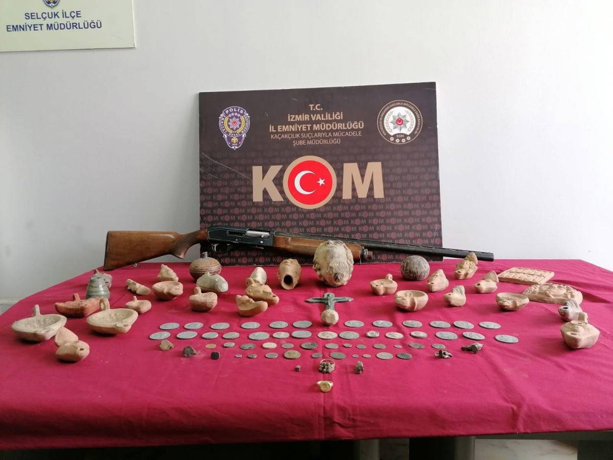 İl Emniyet Müdürlüğü Kaçakçılık Suçlarıyla Mücadele Şube Müdürlüğü ve Selçuk İlçe Emniyet Müdürlüğü ekipleri, ilçede tarihi eser kaçakçılığı yapıldığı bilgisi üzerine çalışma başlattı. Harekete geçen ekipler tarafından önceden belirlenen adrese operasyon düzenlendi.