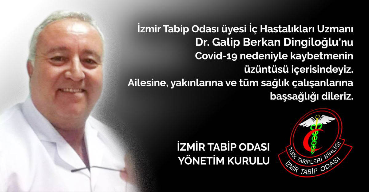 İzmir Tabip Odası'ndan, Dingiloğlu ile ilgili olarak "İzmir Tabip Odası üyesi, İç Hastalıkları Uzmanı Doktor Galip Berkan Dingiloğlu'nu Covid-19 nedeniyle kaybetmenin üzüntüsü içerisindeyiz. Ailesine, yakınlarına ve tüm sağlık çalışanlarına başsağlığı dileriz" açıklaması yapıldı.
