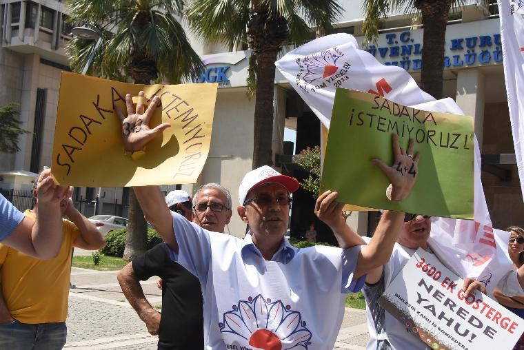 Memur- Sen Türkiye genelinde eş zamanlı olarak açıklama yaptı. Birleşik Kamu- İş Sendikaları Konfederasyonu'na bağlı sendikaların üyeleri de iş bırakma kararı aldı. Konak ilçesi SGK binası önünde toplanan yaklaşık 100 memur, üzerinde 'İktidarın hakemine, yandaşın oyununa teslim olmayacağız' pankartı taşıdı.