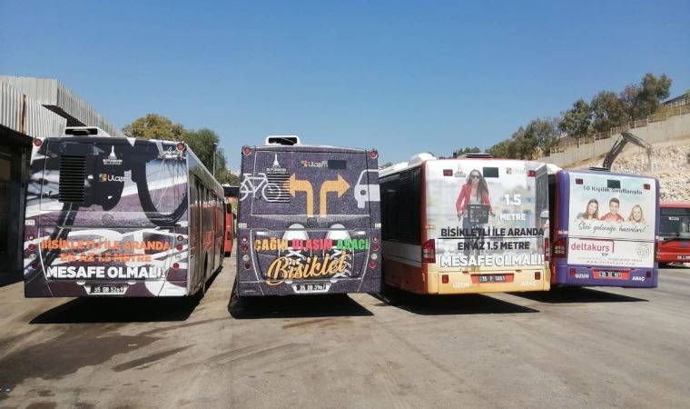 Bu doğrultuda, 30 ilçede bulunan yol bilgilendirme ekranlarında, led panolarda ve billboardlarda, özellikle motorlu taşıt sürücülerine yönelik farkındalık kampanyası başlatıldı. Trafikte bisiklet sürücülerinin güvenliği için dikkat edilmesi gereken kuralların hatırlatıldığı mesajlar ve görsel tasarımlar, şehir merkezindeki ana güzergâhlarda çalışan 15 adet ESHOT otobüsünün arka cephelerine de giydirildi.