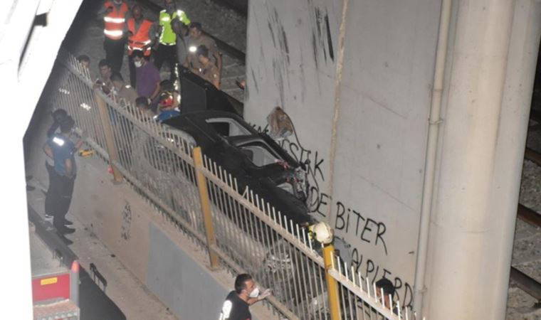 İzmir'in Bayraklı ilçesinde Kamil G. yönetimindeki 50 DF 138 plakalı hafif ticari araç, Bayraklı Mahallesi Cüneyt Sivari Oğulları Sokak'ta viyadükten demir yoluna düştü. Demir korkuluklara çarptıktan sonra düştüğü belirlenen hafif ticari araç, viyadük ayağı ile demir parmaklıklar arasına sıkıştı.