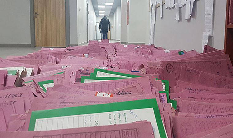 Türkiye ekonomisinde yaşanan kötü gidişat nedeniyle icra dosyalarının sayısı önceki yıllara oranla artış gösterdi. 28 icra dairesi bulunan İzmir Adliyesi’nde icra dosyaları koridorlara taşındı.