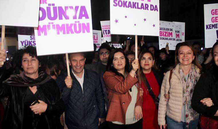 İzmir'de 8 Mart kutlamalarının son programı ise “Gece Gece Kemeraltı” yürüyüşü oldu. 20.15’te Anafartalar Caddesi girişiyle Kızlarağası önünde toplanan kadınlar ellerinde fenerlerle karanlıkları aydınlatmak için yürüdü. İzmir Büyükşehir Belediye Başkanı Tunç Soyer ve eşi Neptün Soyer, CHP İzmir Milletvekili Sevda Erdan Kılıç da yürüyüşe katılarak kortejin önünde yürüdü. Soyer, etkinliğe ilişkin, "Kemeraltı, kadınların fenerleriyle aydınlandı. İzmirli kadınlarla ne kadar gurur duysak az. Her daim karanlıktan kurtaran onlar. İzmir'in sokaklarını hep birlikte "başka bir dünya mümkün" diyerek yürüdük. Çünkü mümkün! Yaşasın İzmir’in Emekçi Kadınları." ifadelrini kullandı.