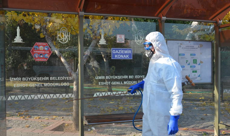 Türkiye’deki ilk resmi vaka açıklanmadan önce koronavirüse karşı önlem almak için hazırlıklara başlayan İzmir Büyükşehir Belediyesi Mart ayından bu yana başta toplu ulaşım araçları olmak üzere kamuya açık 246 bin noktayı dezenfekte etti. Kent merkezi ve çevre ilçelerde çalışma yürüten İzmir Büyükşehir Belediyesi Çevre Koruma ve Kontrol Şube Müdürlüğü’ne bağlı ekipler parklar, sağlık kuruluşları, karakollar, spor alanları, okullar, ibadethaneler, muhtarlık ofisleri, eczaneler, bankalar, kafe ve restoranlar, kamu kurum ve kuruluşlarının hizmet binaları gibi kamuya açık alanları koruma altına aldı.