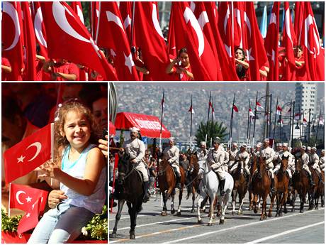 Temsili süvari birliği komutanı ve bir askerin, İzmir Hükümet Konağına koşarak girmesi ve Türk bayrağını asması alkışlarla izlendi.