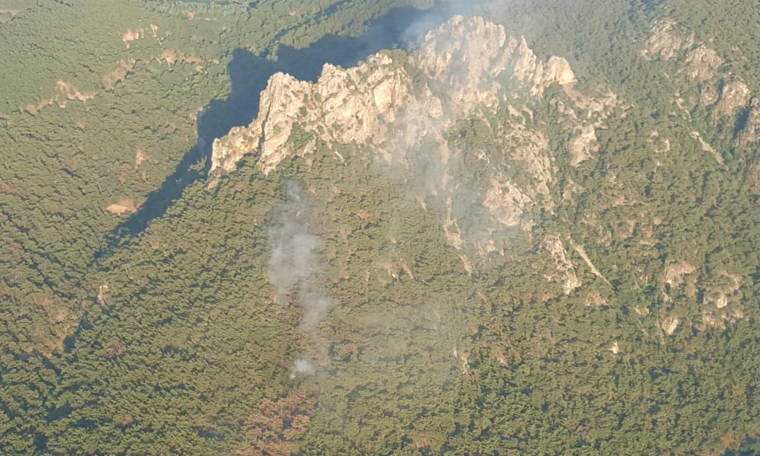 İhbar üzerine Orman Bölge Müdürlüğü ekipleri, yangına 5 helikopter ve 12 arazöz ile müdahale etti.