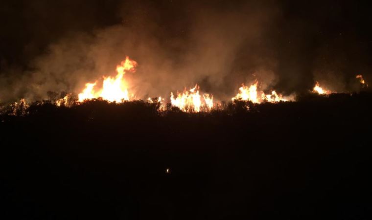 İzmir'in Urla ilçesinde, otluk alanda yangın çıktı. Rüzgarın da etkisiyle kısa sürede büyüyen alevlere itfaiye ekiplerinin müdahalesi sürüyor.