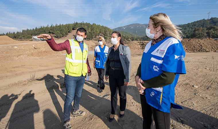 İzmir Büyükşehir Belediyesi’nin Bornova Gökdere'de Temmuz ayında temelini attığı Avrupa standartlarındaki Köpek Rehabilitasyon ve Sahiplendirme Merkezi'nde inşaat çalışmaları hızla sürerken proje hayvan hakları alanında çalışan sivil toplum örgütü temsilcilerinden tam not aldı. İzmir Büyükşehir Belediyesi Genel Sekreter Yardımcısı Yıldız Devran, Hayvan Hakları Federasyonu (HAYTAP) yöneticileri ile birlikte inşaat alanına giderek çalışmaları inceledi. Sahipsiz, yaralı, hasta, engelli ya da bakıma muhtaç hayvanların tedavi edileceği ve sahiplendirilmelerinin teşvik edileceği merkezde bin 500 köpeğin barınacağı bilgisini veren Devran, “Önümüzdeki yıl Temmuz ayında hizmete alacağımız bu merkezimizle birlikte sokak hayvanları için yür&uu ml;ttüğümüz çalışmaları daha kapsamlı hale getireceğiz. Yaklaşık 37 bin metrekarelik alanda kurulan bu merkezimizin büyük bölümü hayvanların sağlığı göz önünde bulundurarak yeşil alana ayrıldı. ‘Satın alma sahiplen’ sloganımız çerçevesinde yurttaşlarımız burada ortak bir alanda köpeklerle bir araya gelebilecekler” dedi.