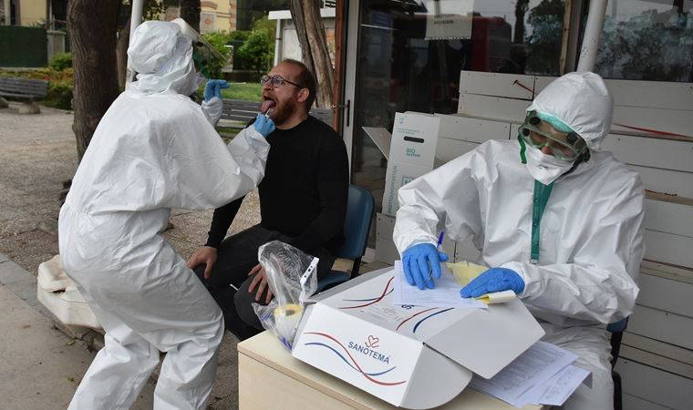 Dün öğlen saatlerinde İl Sağlık Müdürlüğü'ne bağlı oldukları öğrenilen iki sağlık çalışanı, Karşıyaka İskele ve Osmanbey Parkı'nda vatandaşlara koronavirüs testi yaptı. Sosyal medyaya da düşen görüntülerde sağlık çalışanlarının, sıraya giren vatandaşlarla tek tek ilgilendiği ve vatandaşların boğazları ile burunlarından örnek aldıkları, örnekleri deney tüplerine koydukları görüldü. Görüntülerin sosyal medyada yayılmasının ardından bölgede bulunan vatandaşların test yapılan noktaya gittikleri ve ekiplerin de gün boyunca yüze yakın koronavirüs testi yaptığı öğrenildi.