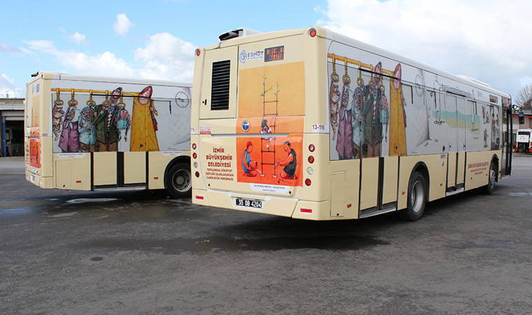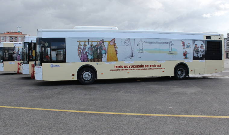 Birleşmiş Milletler Kadın ve Kız Çocuklarının İnsan Haklarının Korunması ve Geliştirilmesi Ortak Programı çerçevesinde, 2010 yılından bu yana “Kadın Dostu Kent” unvanı taşıyan İzmir Büyükşehir Belediyesi, bu karikatürleri farklı mecralarda sergileme kararı aldı. Yarışmada ilk 100’e giren eserler, bu doğrultuda ESHOT otobüslerine giydirildi. Yoğun kullanılan hatlarda hizmet veren otobüsler aracılığıyla toplumsal cinsiyet eşitliği konusundaki farkındalığın artırılması hedefleniyor.